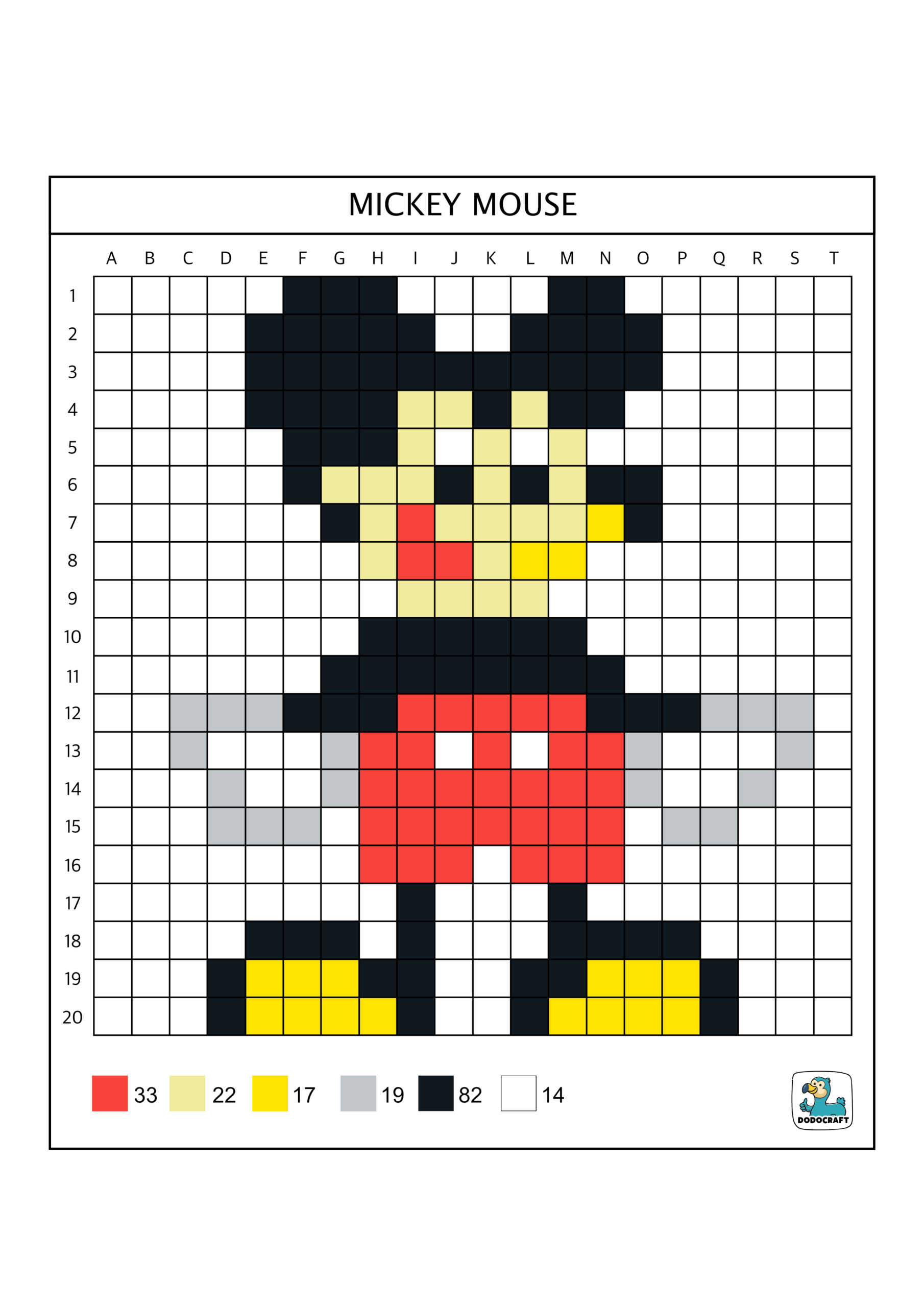 Mickey Mouse en Pixel Art 20×20