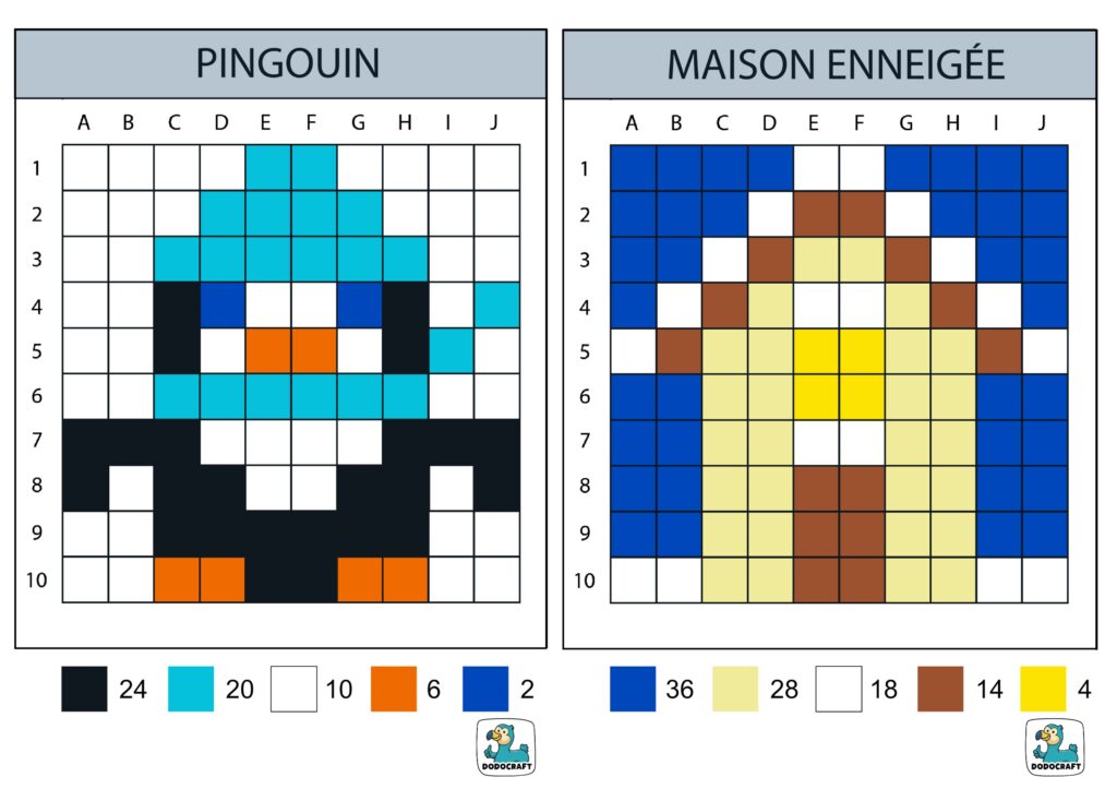 De nouveaux modèles compatibles avec les nouvelles couleurs ainsi que les pixels lettres, chiffres et symboles. Et pour reproduire les modèles sur du papier, c’est là : Grilles vierges de Pixel Art 10×10