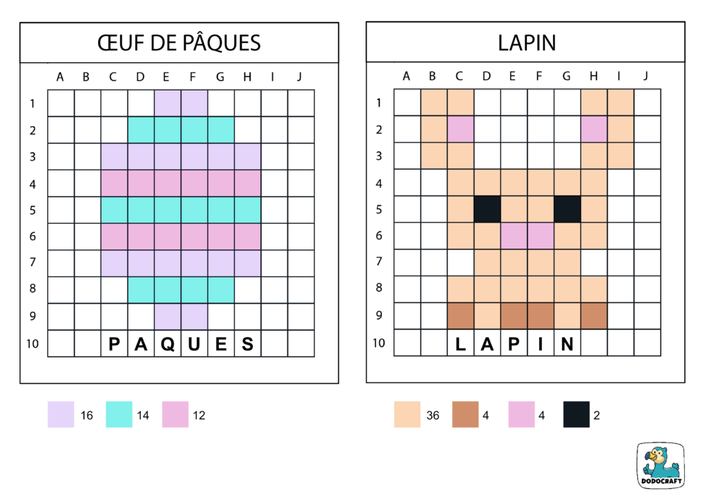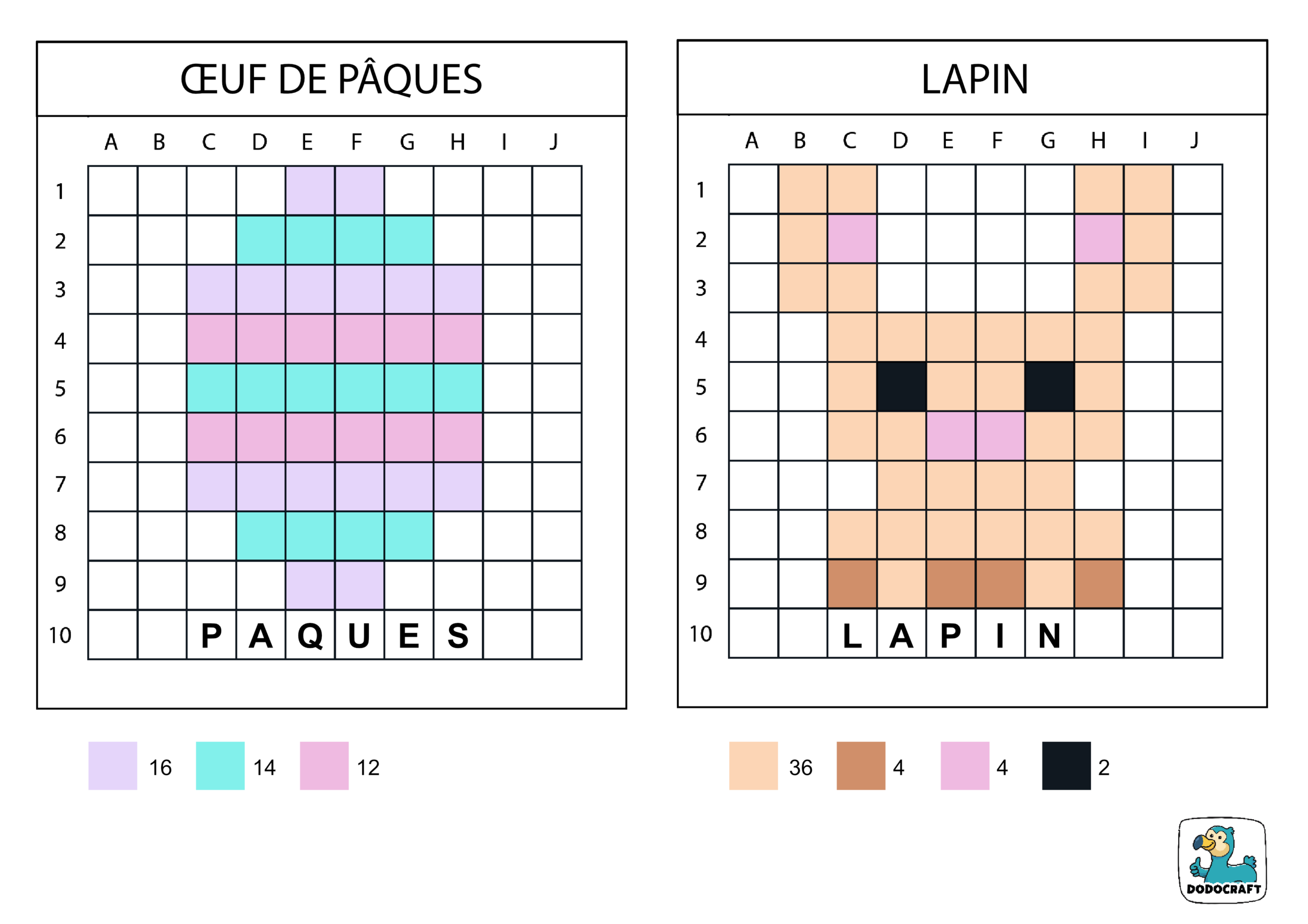 Œuf de Pâques & Lapin en Pixel Art 10×10