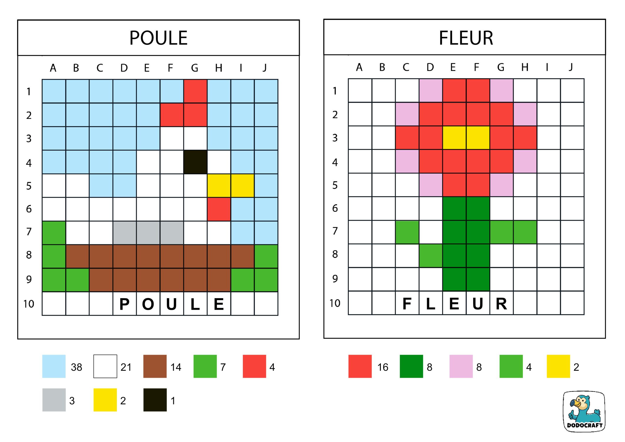 Poule & Fleur en Pixel Art 10×10